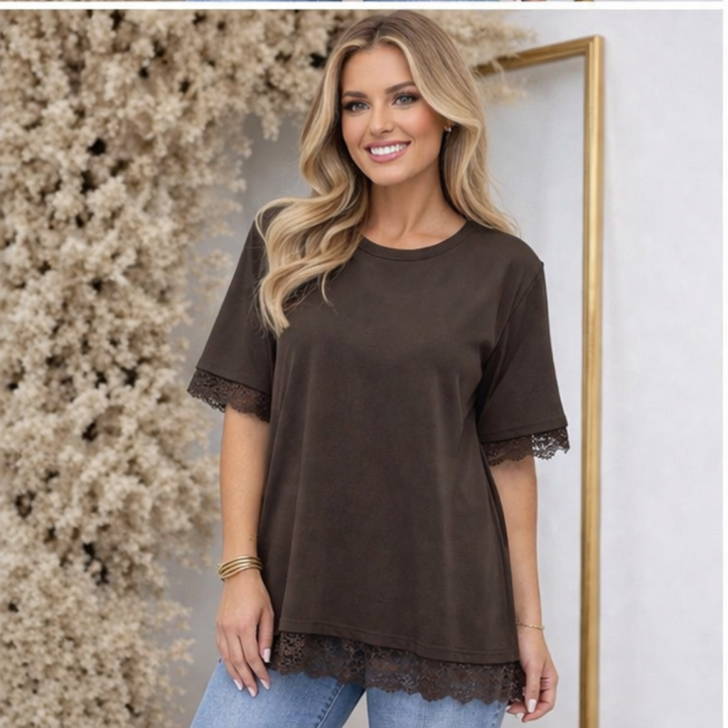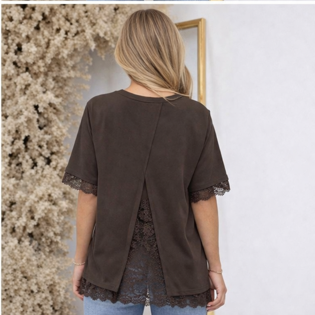 Bella Lace Back Top in Chocolate