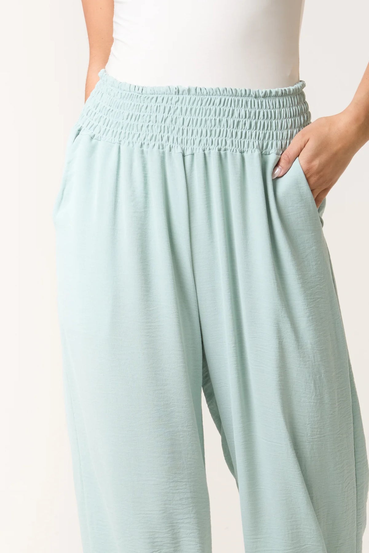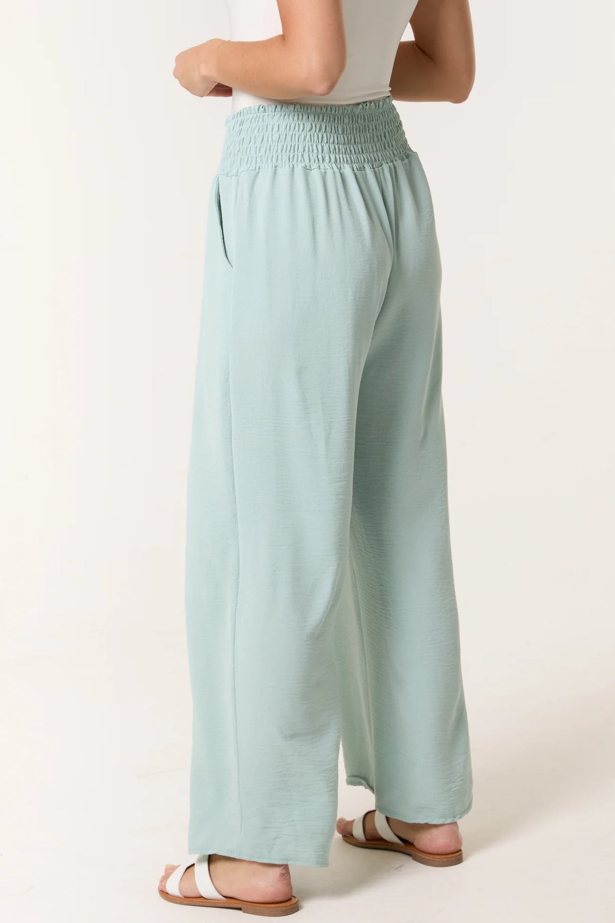 The Myla Elasticated Waist Wide Leg Trousers in Aqua Mint