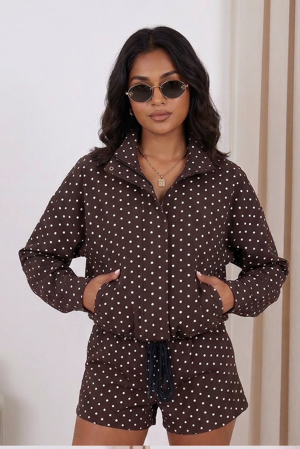The ultimate off-duty cool girl piece ✨ The Harper Polka Dot Zip Top is giving effortless, sporty chic with a feminine twist.