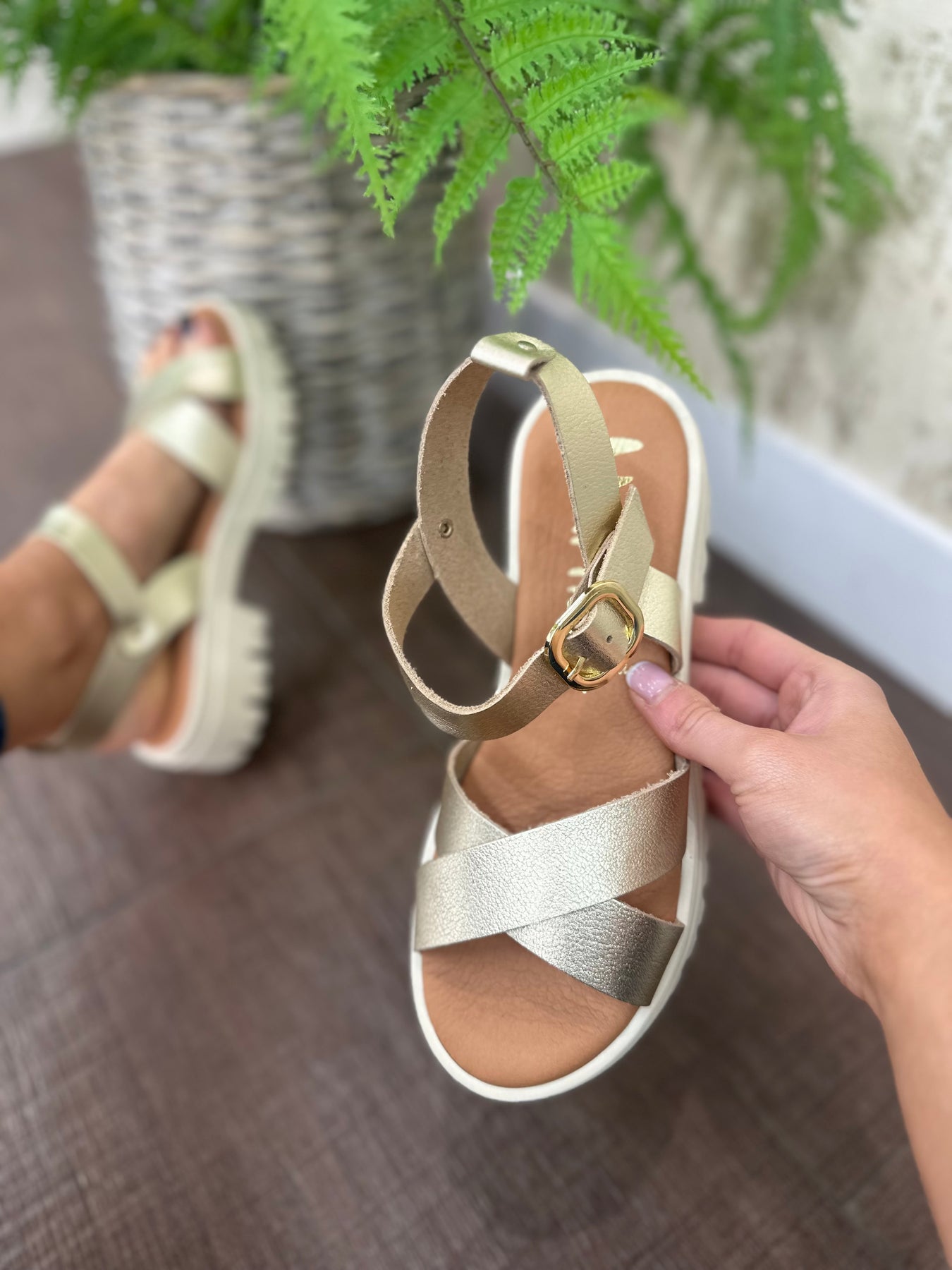 Step into effortless summer style with the Marila Cinta Platform Sandal in Champagne Gold. Beautifully crafted in Spain, this modern platform sandal blends contemporary design with exceptional comfort.
